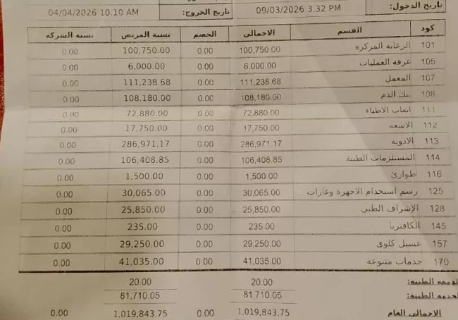 Bill for medical services provided to the deceased, April 5, 2026The combined cost of the lab and blood bank was nearly 219,000 pounds, while “medical supplies” came to about 106,000. The intensive care bed alone cost 100,000 pounds.