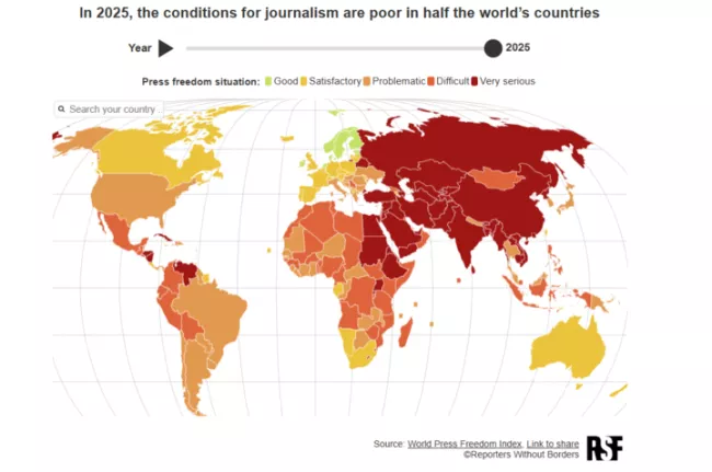 The data shows Egypt’s ranking has continued to deteriorate since the downgrad in 2017 from a “difficult” to a “very serious” country for journalists.