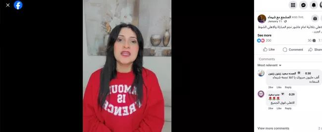 “I began producing content in 2020 during the COVID-19 pandemic because of my genuine love for football and sports,” she said. “Initially, many followers on my Facebook page refused to accept that a woman analyze football instead of just watching it.” Her page, “The Fan with Shimaa,” now boasts more than 180,000 followers.