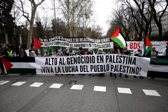 Protesters in Madrid call for an end to the genocide in Palestine during solidarity events held across several Spanish cities on Feb. 25, 2024.