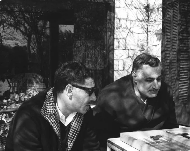 Gamal Abdel Nasser and Abdel Hakim Amer playing a game of checkers.