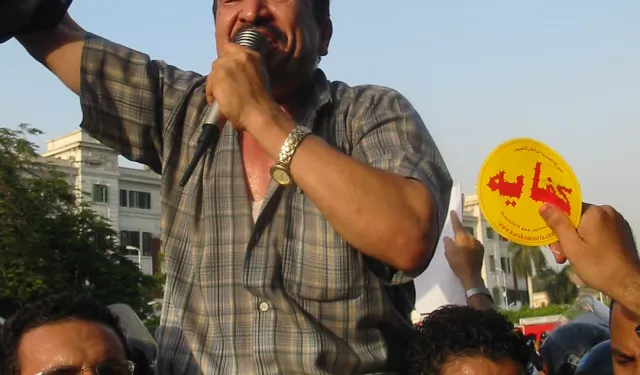 كمال أبو عيطة يقود مظاهرة في 2005. صورة برخصة المشاع اﻹبداعي: حسام الحملاوي- فليكر