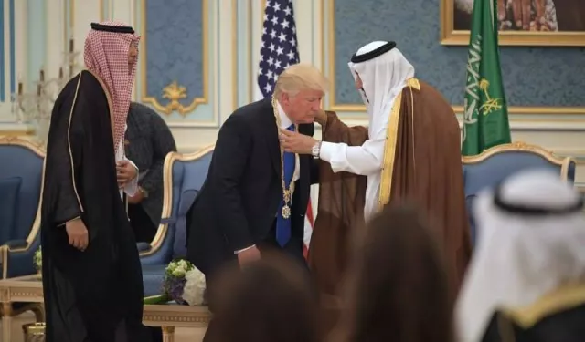 الملك سلمان يمنح ترامب قلادة الملك عبد العزيز، مايو 2017