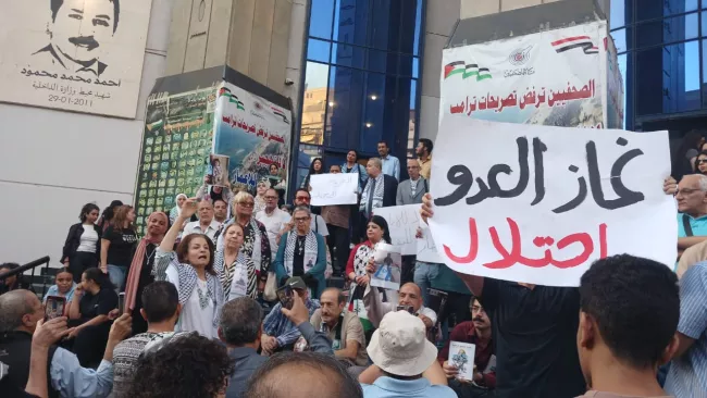 تضمنت المطالبة بالحرية للمعتقلين.. وقفة تضامنية مع فلسطين على سلالم "الصحفيين"