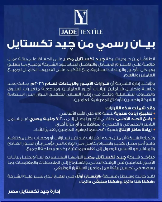 صورة من بيان إدارة جيد تكستايلوشكا عمال تحدثوا لـ المنصة أمس من الفارق الكبير بين أجورهم وأجور عمال الشركة في تركيا، حيث قالت إحدى العاملات "إحنا طلبنا أقل من حقنا، يدونا حتى نص رواتب عمال الشركة في تركيا، مش المفروض إنهم زمايلنا وإننا عمال في شركة واحدة؟".