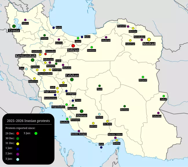 In late December 2025, widespread protests erupted across Iran, beginning in Tehran, where shopkeepers and merchants took to the streets over deteriorating economic conditions. Within days, the protests gained support in over 170 cities across the nation.