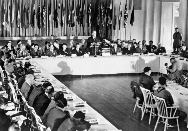 نتج عن مؤتمر بريتون وودز إنشاء صندوق النقد الدولي/IMF والبنك الدولي للإنشاء والتعمير IBRD، الذي سيصبح لاحقًا البنك الدولي، لتوفير الدعم المالي والفني للدول في جهود إعادة الإعمار والتنمية اللازمة بعد الحرب. في تلك اللحظة، تم تحديد الدولار الأمريكي كعملة احتياطية رئيسية مع ربط العملات الأخرى به، مما عزز من هيمنة الولايات المتحدة اقتصاديًا.