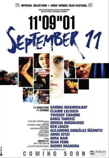 في عام 2002 أُنتج فيلم عن تفجير برجي التجارة في نيويورك، المعروف بأحداث 11 سبتمبر. يتكون الفيلم الجماعي من 11 فيلمًا قصيرًا لـ11 مخرجًا من كل أنحاء العالم. من ضمنها، قدَّم المخرج الإسرائيلي العالمي "المرموق"، عاموس جيتاي، ما لم يخرج عن مستنقع الدعاية الصهيونية التقليدية، التي تنتهز أي فرصة لتُذكِّر الأمريكيين بالتماهي الواقعي، والضروري، مع الإسرائيليين، باعتبار أن كليهما ضحايا كارهي جهود الرجل/المستوطن الأبيض في بناء دولتين متقدمتين وديمقراطيتين على أرضٍ بِكرٍ لا يملكها أحد. فظهر فيلمه في هيئة مشهد طويل للفوضى الناتجة عن عملية "إرهابية" فلسطينية ضد مواطني إسرائيل في القدس الآمنة.