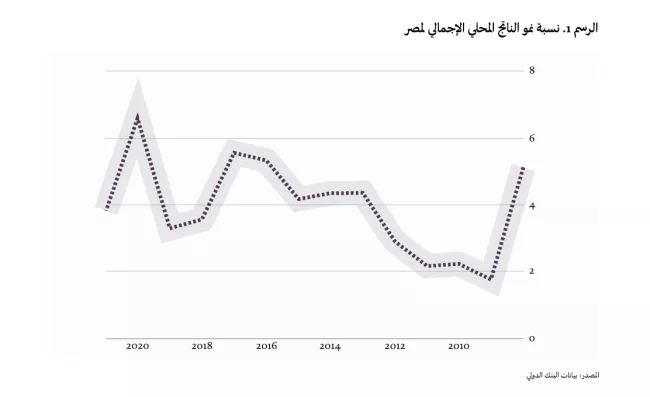 استطاع النمو الاقتصادي استعادة شيء من زخمه منذ عام 2014، وتجاوز معدل نمو السكان، لكن في المقابل ظل عجز الميزان الجاري مرتفعًا وأخذ يتفاقم تدريجيًا. نبع هذا العجز من أزمات دولية خلال هذا العقد أثّرت سلبًا على إيرادات النقد الأجنبي، من تباطؤ الاقتصاد العالمي خلال وباء كوفيد إلى التضخّم العالمي بعد حرب روسيا وأوكرانيا، وأخيرًا تأثير الحرب على غزة على إيرادات قناة السويس. لكن تزايدت ضغوط النقد الأجنبي أيضًا من عوامل محلية تتعلّق بارتفاع خدمة الدين الخارجي، التي نبعت من صعود تكاليف الديون عالميًا وتوسّع الدولة في أعمال البنية الأساسية.