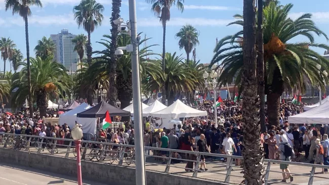 ذهبت لمظاهرة صغيرة تمهيدية لهذا المهرجان الفلسطيني الذي سيستمر ثلاثة أيام على رصيف الميناء حتى لحظة رحيل الأسطول باتجاه غزة. كانت المظاهرة في ميدان صغير في الحي القديم/القوطي لبرشلونة، الذي يضم مقر البلدية ومقر حكومة إقليم كتالونيا. لكنَّ المظاهرة الصغيرة كبرت، وتحولت لمظاهرة حاشدة حتى الميناء، فرأيت القوارب ورأيت الميناء.