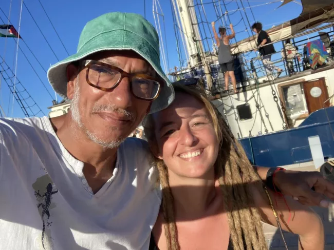 "صدفة غبية دخلت في الطريق بوظت مسار من يوم 27 أغسطس لما وصلت برشلونة ويوم 31 أغسطس لما ركبت المركب، وده مسار مرهق"؛ يُشير باسل إلى إرهاق الحياة على مركب صغير "الحياة أصعب مما كنت متخيل على المستوى الجسدي والعقلي والنفسي"، لكنه يستدرك "ده المسار اللي اخترته وكنت مرتاح لفكرة إني في المهمة دي وقادر أكتب وأنشر وأتواصل مع الناس وأقول إن فيه واحد مصري في الأسطول".