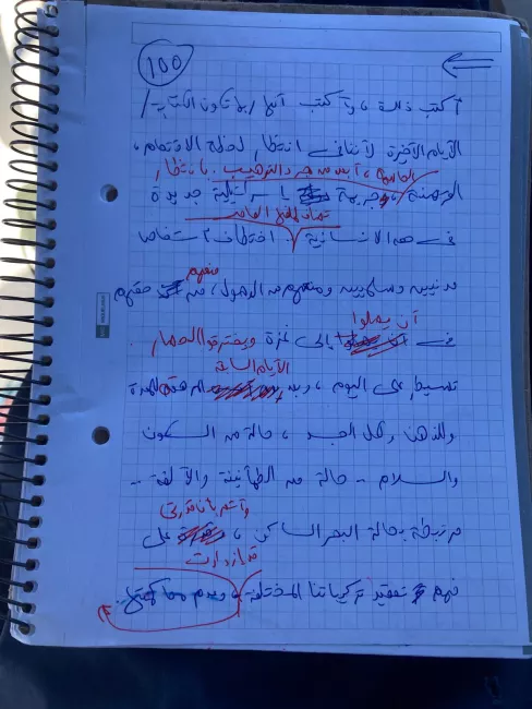 المقالات التي حرص باسل على إرسالها إلينا مصورة مرة ومقروءة صوتيًا مرة أخرى، لمراجعتها ونشرها كانت تأتي "مكتوبة بخط اليد، وبعمل عليها تعديلات بالقلم الأحمر في القراية التانية، ومش بالتركيز اللي بطلبه من نفسي في الطبيعي".