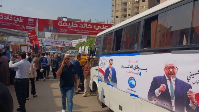 ورصدت المنصة وصول عشرات النساء وكبار السن إلى مدرستي الشيخة جواهر وطه حسين والمعهد الأزهري الابتدائي في عربات ميكروباص وحافلات صغيرة تحمل صور عدد من المرشحين.