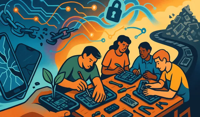 العدالة هنا لا تقتصر على المستخدم، وتشمل مَن صنع القطعة ومَن يعيد تدويرها. وربما تكون معركة الحق في الإصلاح هي أحد المكونات لجبهة اجتماعية واسعة تضم المصلحين الحرفيين وطلاب المدارس الفنية وجمعيات المستهلكين والمبادرات البيئية ومطوّري البرمجيات الحرة.