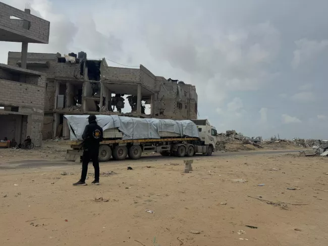 أول شحنة كرفانات مفككة تدخل قطاع غزة، 19 فبراير 2025