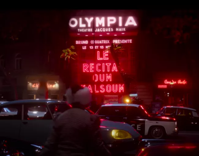 يفتتح فيلم الست برحلة أم كلثوم إلى باريس للغناء على مسرح الأولمبيا الشهير دعمًا للمجهود الحربي بعد نكسة 1967. اختار مروان أن يجمع كل مؤثرات الألوان في المشهد نفسه، تارة يلونها بالأبيض والأسود وتارة يعود لألوان "ريترو" التي تُستخدم للإيحاء بأن الصورة من الماضي، ثم يعود لاستخدام ألوان أكثر تباينًا. اغتوى بالإتاحة فقرر أن يبهر مشاهديه بكل مؤثر موجود في برامج تحرير الفيديوهات، كلها مرة واحدة دون سبب يمكن إدراكه.
