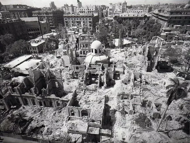 أطلال فندق شبرد، وما تبقي منه عقب حريق القاهرة 1952