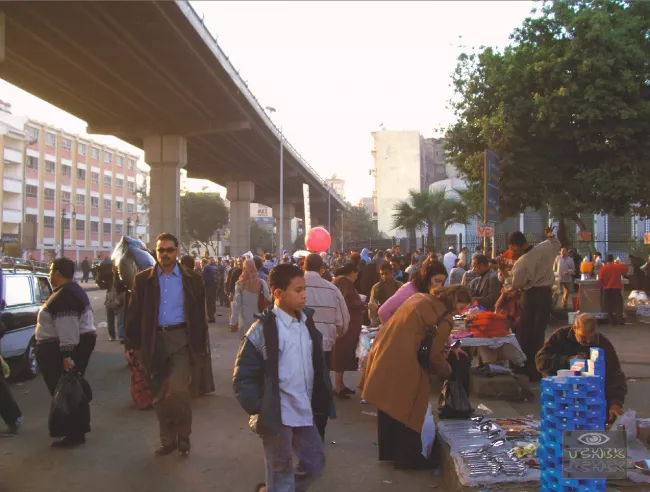 يتحدث الشاب هيثم محمد، 32 عامًا، صاحب فرشة ملابس، بلغة البائع الذي يعرف بدقةٍ متى يتأهب حين يمر الزبون ومتى يستريح ليتناول الغداء عندما تهدأ أرجل المارة؛ "إحنا بنفضل شغالين طول النهار والشغل خفيف، لكن الضغط بيبدأ من الساعة 8 بالليل لحد الساعة 2 صباحًا".