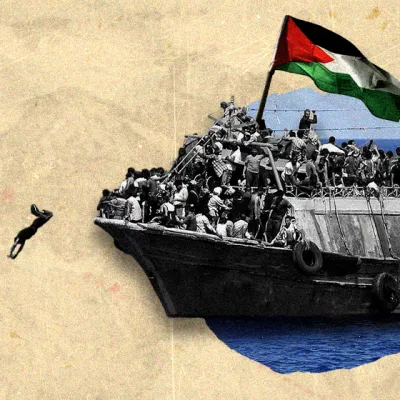 كلُّ هؤلاءِ معنا على القواربِ باتجاهِ غزةَ. قواربٌ محملةٌ من أكثر من 44 دولةً، يمثّلون أكبرَ حركةِ تضامنٍ منذ حربِ فيتنامَ. هذه المرةَ مع الشعبِ الفلسطينيِّ.